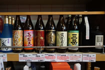 店主自身が高価なお酒よりも安価で美味しいお酒は沢山ある、というポリシーのもとにお酒を仕入れておりますのでレパートリーには自信があります。特に100種類以上常備している地焼酎は他店では比較的高い金額で販売している品でも、当店は直接仕入れているために安価設定で販売しております。